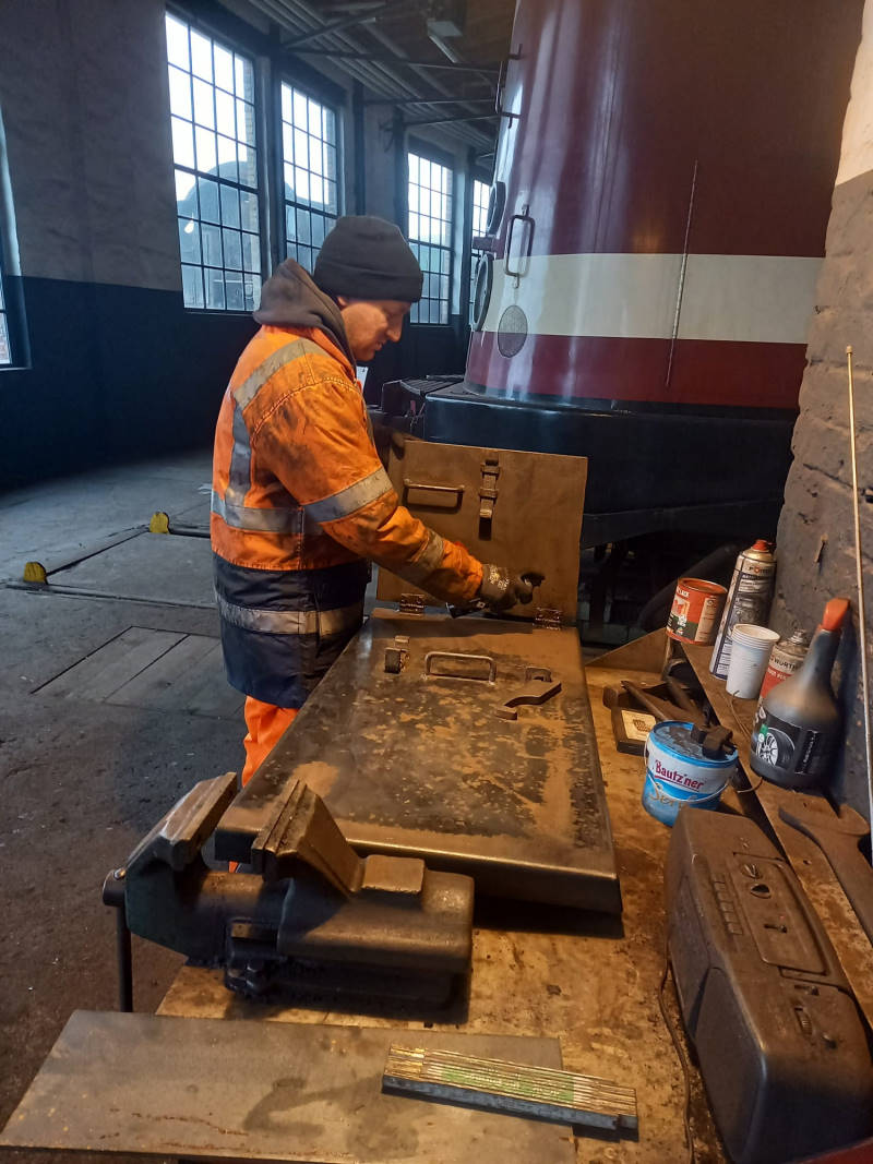 Immer noch muss Arbeit in den zukünftigen Tender der Dampflok 50 3570 gesteckt werden, da immer wieder rostige Überraschungen entdeckt werden. Die Arbeiten nähern sich aber nun dem Ende. Ein paar Bleche müssen noch eingeschweißt werden. Einige Anbauteile konnten schon lackiert werden.