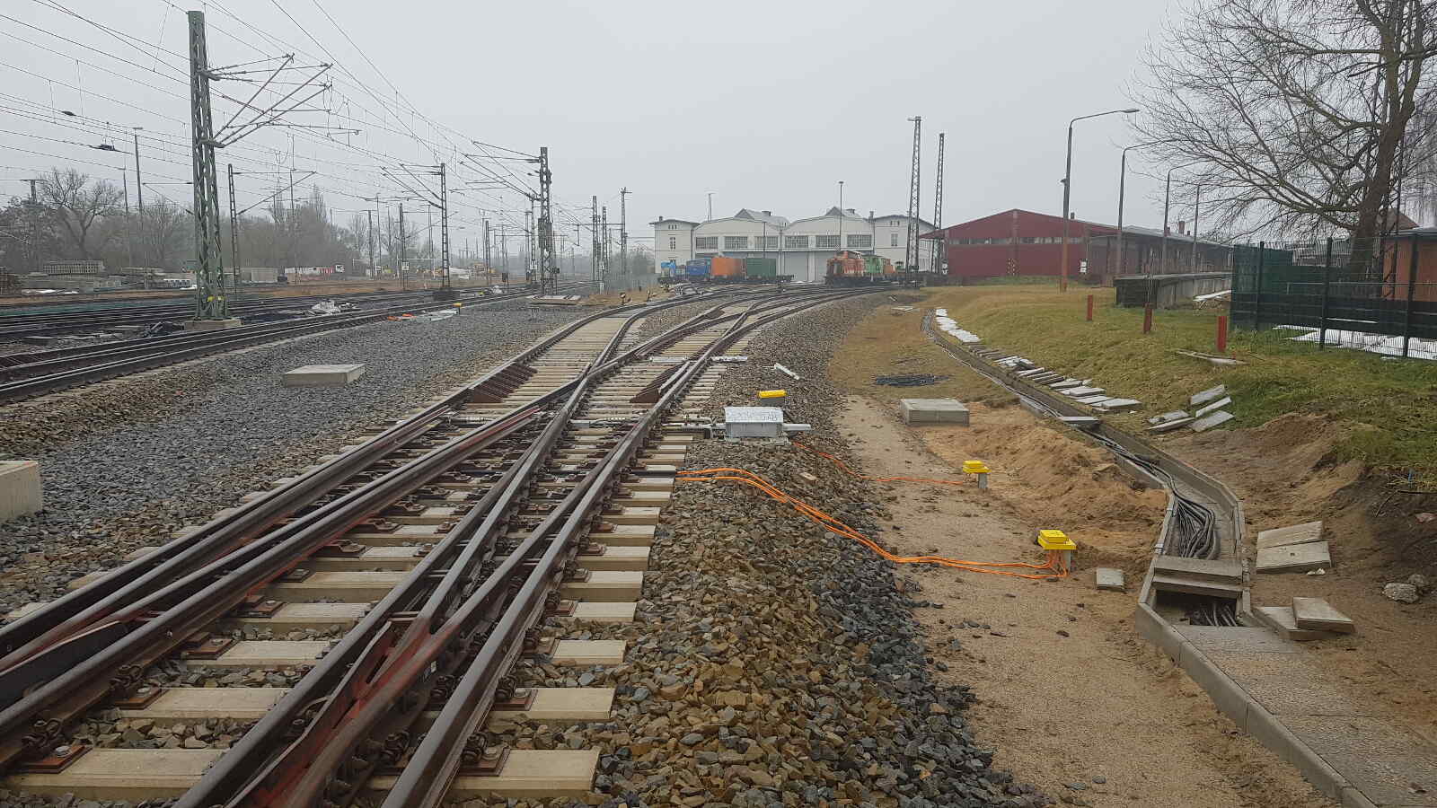 Am gleichen Tag hatten wir nochmal Gelegenheit, uns unsere neue Gleiszufahrt anzusehen. Hier schreiten im Moment die Arbeiten für die elektrischen Weichenantriebe und Signale voran.