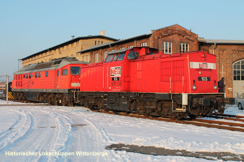 Am 12. Februar 2013 rollten unsere beiden Neuzugänge ins Bw Wittenberge. Zum einem ist es die Nr. 103 der MEG, die ehemalige 114 774-3, der DR und die Nr. 317 der MEG, die ehemalige 132 500-0 der DR. Foto: D. Kathke Fahrzeug: 114 774-3 |