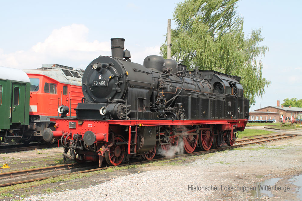 Am 31. Mai 2013 machte erneut eine Dampflok Station im Bw Wittenberge und ergänzte hier ihre Vorräte. 78 468 vom Verein "Eisenbahn-Tradition e.V." aus Lengerich steht hier zum Ausschlacken auf dem "langen Kanal". (Foto: D. Kathke) |