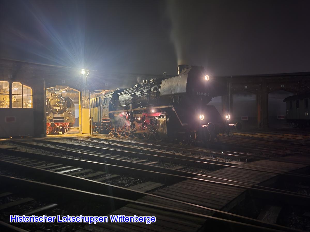 Ende November wurde unsere 50 3570-4 zum letzten Mal in diesem Jahr angeheizt. Sie dampfte die ölgefeuerte 01 0509-8, für eine Adventsfahrt auf. In den Abendstunden des 29.11.2022 stand die Reko 50 unter Dampf vor dem Lokschuppen.