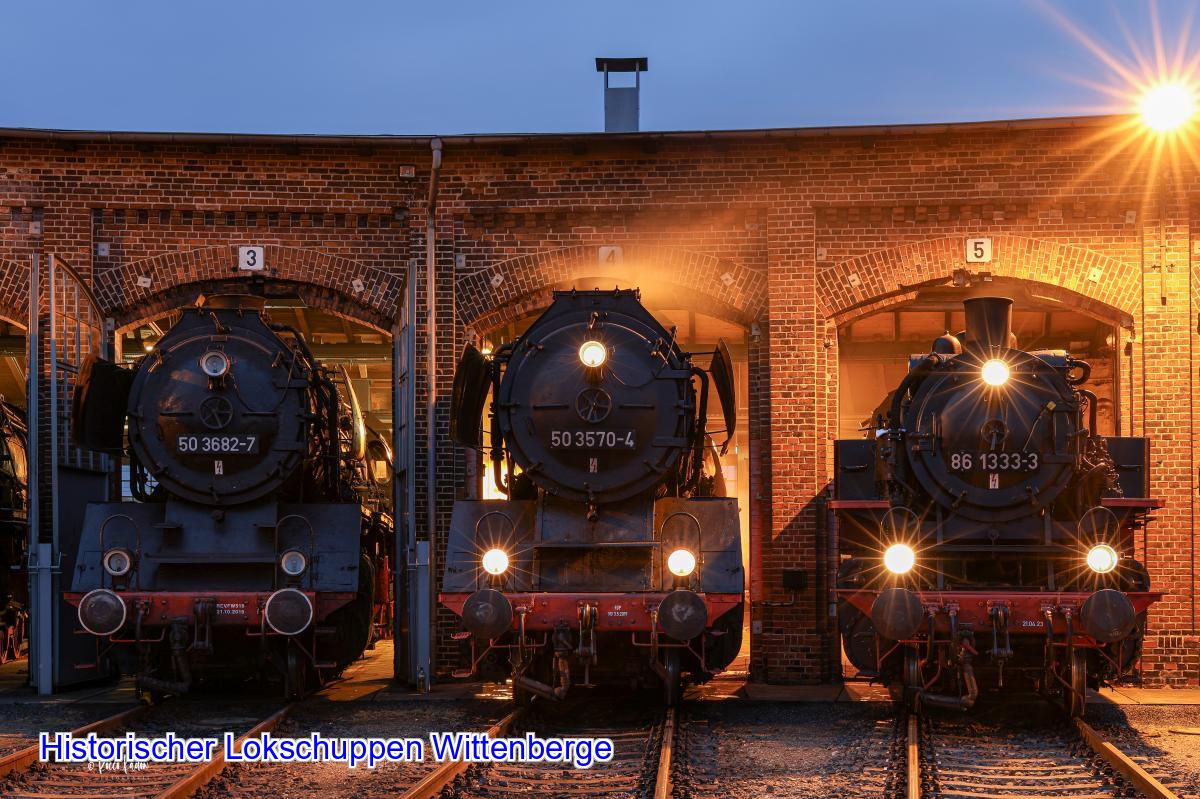 Mit einer Nachtaufnahme unserer 50 3682-7, 50 3570-4 und Gastlok 86 1333-3 bedanken wir uns für die Treue sowie zahlreichen Besuche.