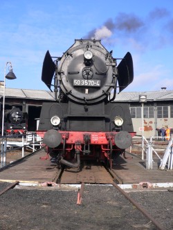 Die Dampflok 50 3570-4 wurde 1942 als eine von mehreren Tausend ihrer Baureihe in Dienst gestellt. Seinerzeit trug sie die Nummer 50 2308. Nach dem Einsatz in der Lokkolonne verblieb sie in der DDR und wurde Ende der 1950er Jahre grundlegend rekonstruiert. Dabei erhielt sie einen neuen fabrikneuen Kessel und trug seitdem die Betriebsnummer 50 3570.