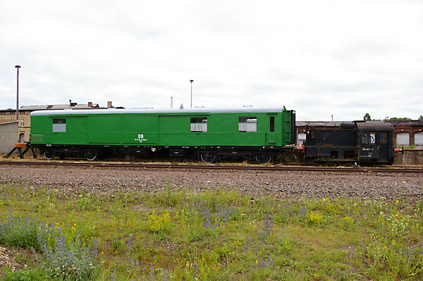 Wagen AutotransportwaggonIn unserem Besitz befindet sich der Autotransportwagen aus dem 1. Regierungszug der ehemaligen DDR. Der zuletzt als 60 50 99-54 679-4 bezeichnete Waggon wurde durch uns im Januar 2006 in letzter Sekunde vor der Verschrottung gerettet. Der ehemalige Pw4ü-30 (Gotha, 1930) überdauerte zuletzt als Bahndienstwagen im Leipziger Hilfszug die Zeit und kam erst 2004 nach Wittenberge ins ehemalige Raw.