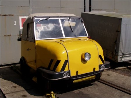 Gleiskraftrad Typ 1 SchienentrabbiDer Schienentrabbi ist eine motorisierte Draisine zum Transport von 2 Personen. Er ist mit einem 18 PS Zweizylinder-Zweitakt-Motor ausgerüstet, der auch im Trabant P50 verwendet wurde.