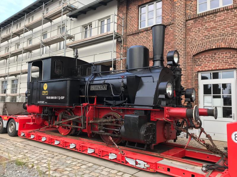 Heute gab es ein eher ungewöhnliches Bild in Wittenberge zu sehen. Denn wann rollt schon eine Dampflok mitten durch die Stadt? Das Rätsel ist schnell gelöst, denn heute wurde die Dampflok "Pritzwalk" per Tieflader beim Historischen Lokschuppen Wittenberge angeliefert. Die Lok kam huckepack aus Meyenburg, damit sie an der Jubiläumsveranstaltung des Museums am 12. und 13.10.2019 teilnehmen kann. Sie wird dann unter Dampf zu sehen sein, sich mit den anderen Lokomotiven des Museums bei den beliebten Führerstandsmitfahrten abwechseln und bekommt sicher auch einen Ehrenplatz in der Fahrzeugparade, die an den Veranstaltungstagen jeweils gegen 14:00 Uhr durchgeführt wird.