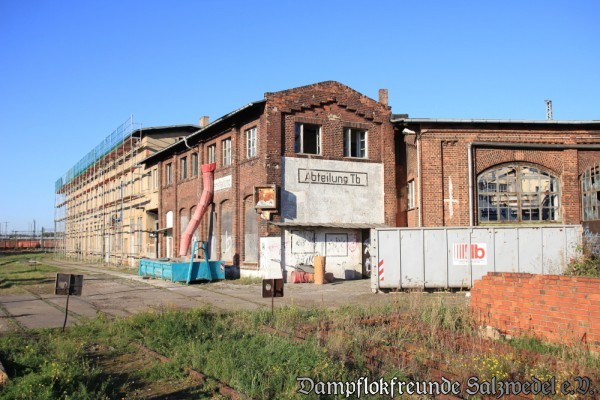 Inzwischen haben die Bauarbeiten im Bereich der Lokschuppen II und III des ehemaligen Bw Wittenberge begonnen: