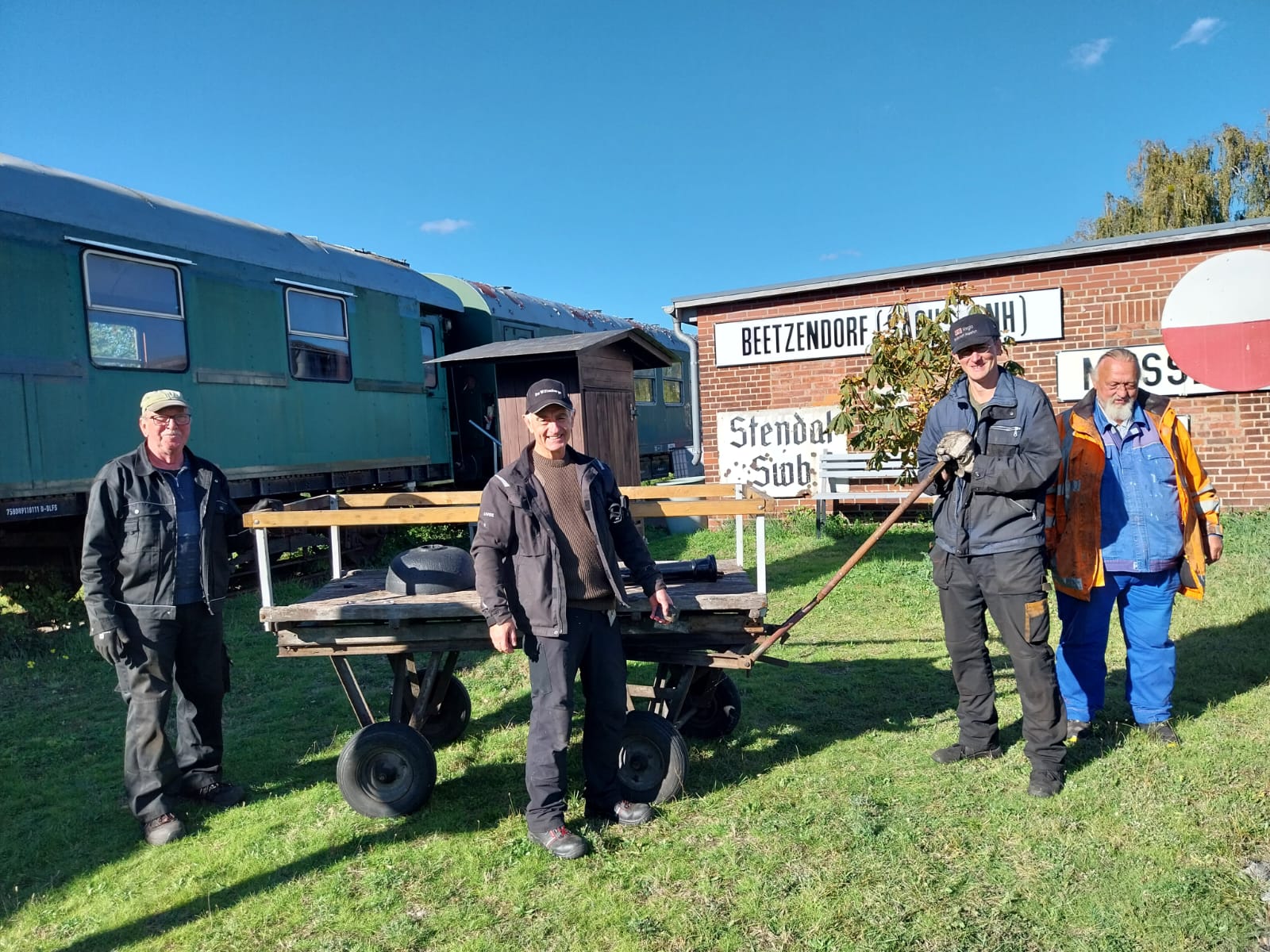 Heute freuen wir uns ganz besonders, dass wir über eine öffentliche Zuwendung für die Instandsetzung unserer Dampflok 50 3570 aus der sogenannten Glücksspielabgabe des Landes Brandenburg berichten können. Nicht, dass Sie sich von dem Namen täuschen lassen: Die anstehende Kesselreparatur der Lok ist natürlich kein Glücksspiel. Aber die nun zur Verfügung gestellten Mittel stammen aus dem Teil der Lotto-Spieleinsätze, die nicht im Rahmen der Lotterie ausgeschüttet werden, sondern vom Land für gemeinnützige Zwecke verwendet werden. Herr Minister Keller vom Ministerium für Wirtschaft, Arbeit, Energie und Klimaschutz überbrachte uns die freudige Botschaft persönlich und übergab auch einen symbolischen Scheck über die Fördersumme mit. Wir bedanken uns dafür sehr herzlich, denn die Mittel sichern unsere Zukunft als lebendiges Museum. Das folgende Bild zeigt die strahlenden Gesichter bei der Übergabe der Fördermittel: Herr Minister Daniel Keller, Doris Müller (erste Vorsitzende unseres Vereins), Dennis Kathke (zweiter Vorsitzender unseres Vereins), Dr. Oliver Hermann (Bürgermeister der Stadt Wittenberge).